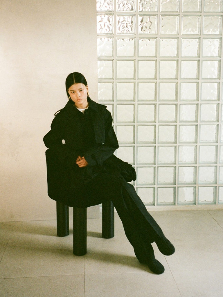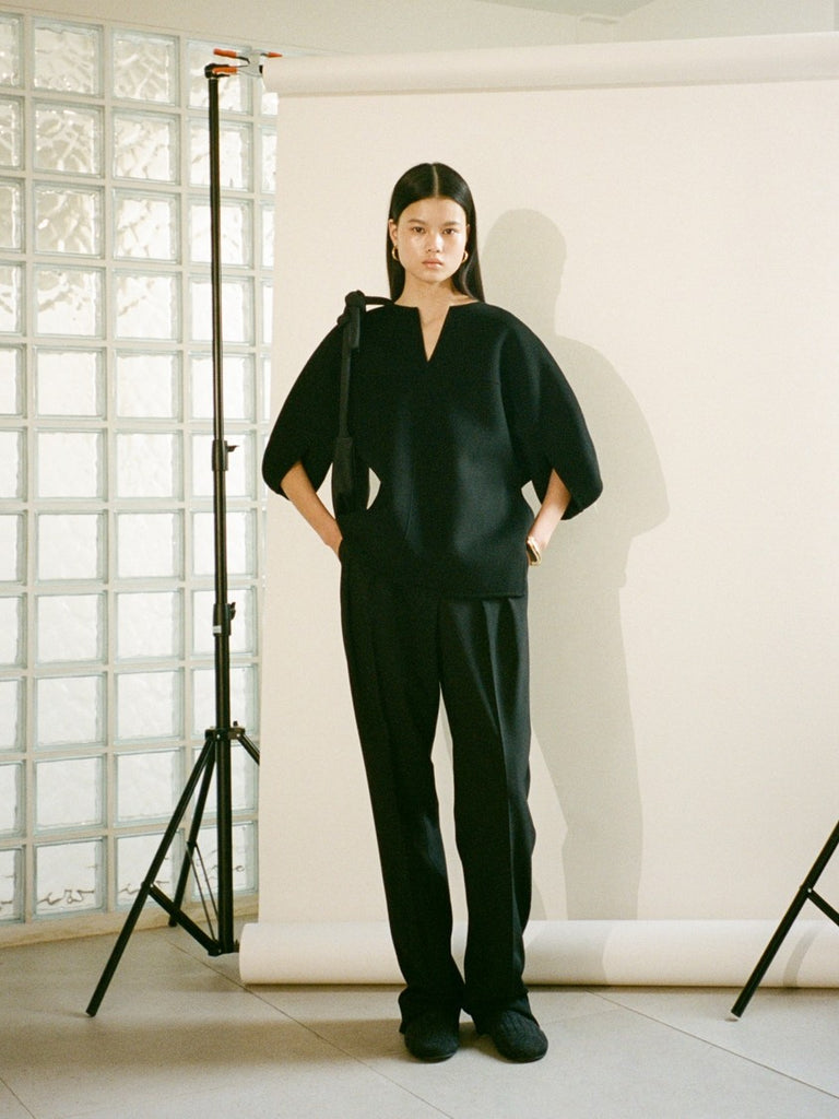 Sculptural Double-faced Wool Top with Slit Rounded Sleeves
