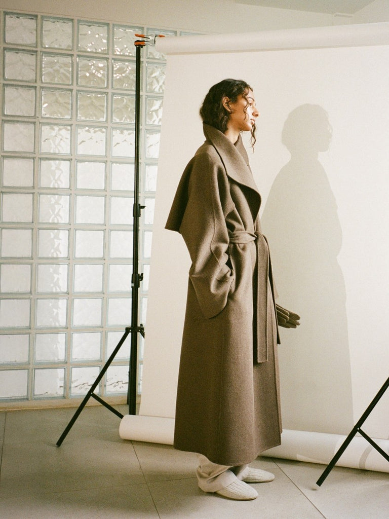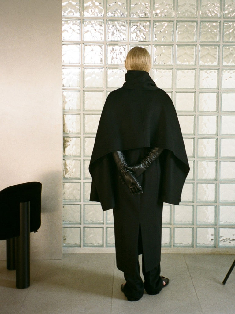 Draped-Collar Cashmere Coat with Convertible Cape Sleeves