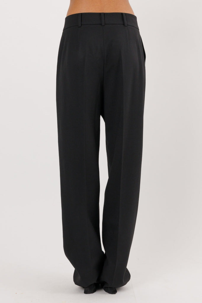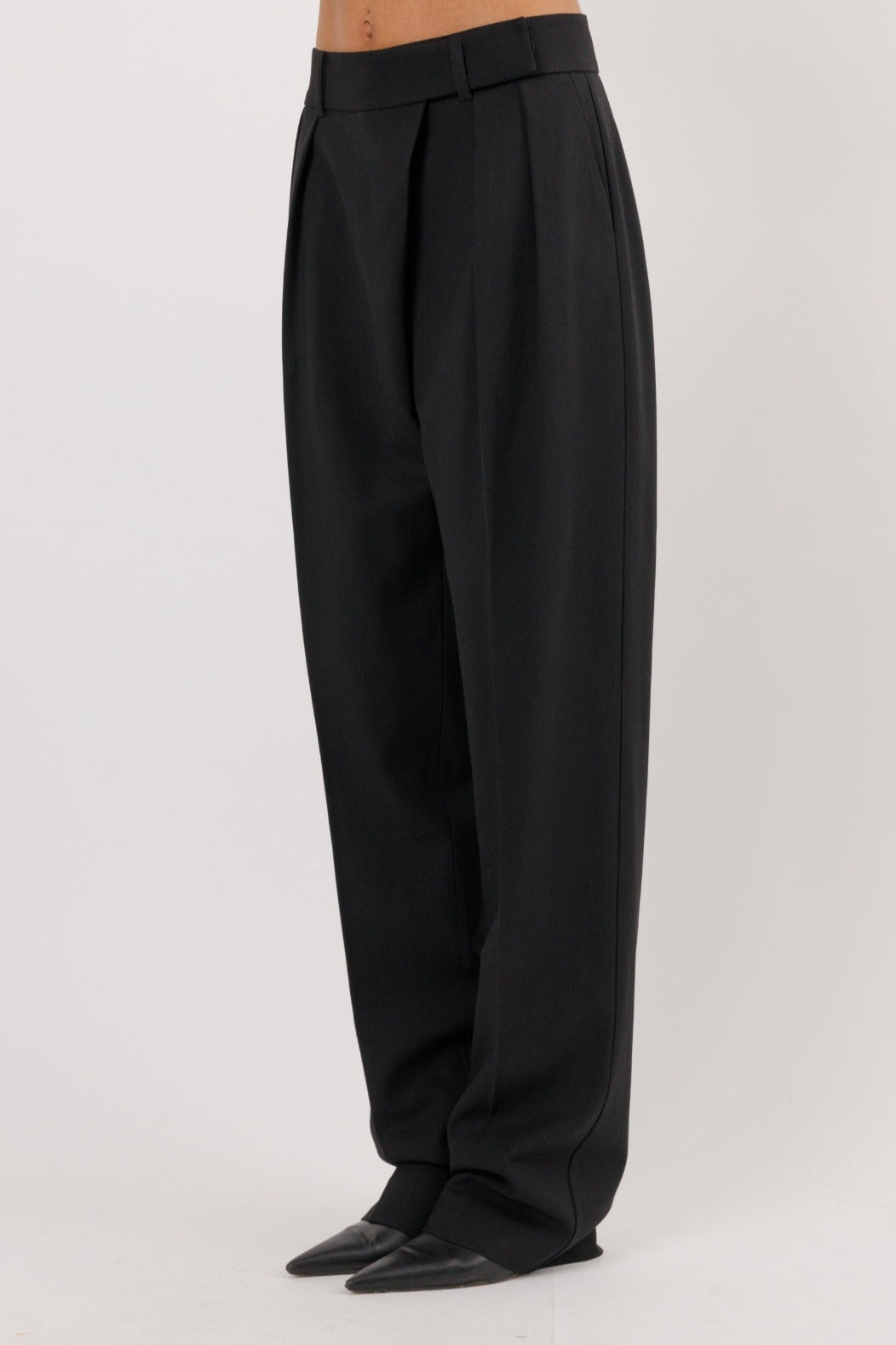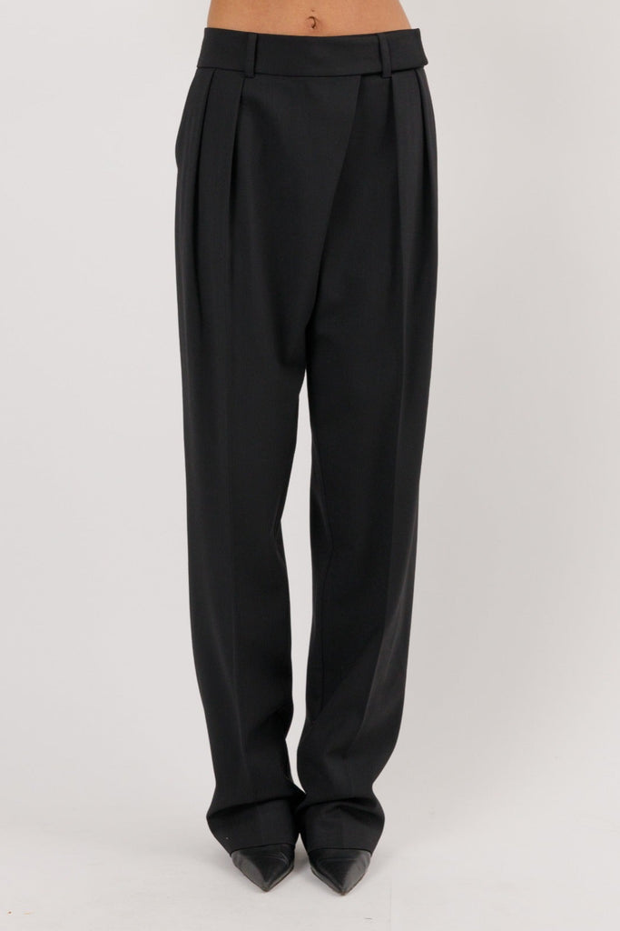 Straight Wool Pants with Diagonal Front Closure